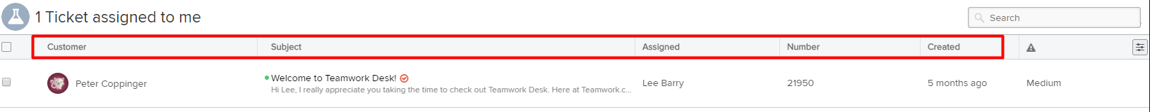 Within Teamwork Desk, you can customize which columns appear when viewing an inbox.