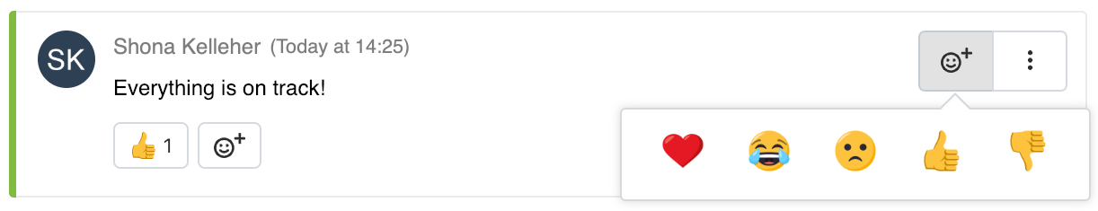 You can also select the reactions icon below the project update if there are already existing reactions present.