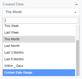 Filter the results based on when messages were created using one of the default time frames or a custom date range.