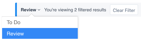 When a filter is active, you can also change quickly between saved filters by clicking the filter name at the top of the page and choosing another from the dropdown.