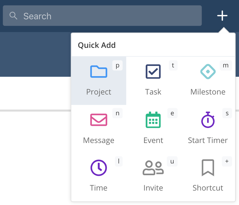 Within Teamwork.com, you can quickly add a new project from any area of your